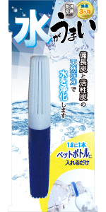 ペットボトルに入れるだけで美味しい水に 備長炭と活性炭のWパワーで水道水のカルキや不純物を吸着して浄水。 イヤな臭いも抑え、おいしい水にします。 1リットルの水に対し、本品1本をご使用ください。